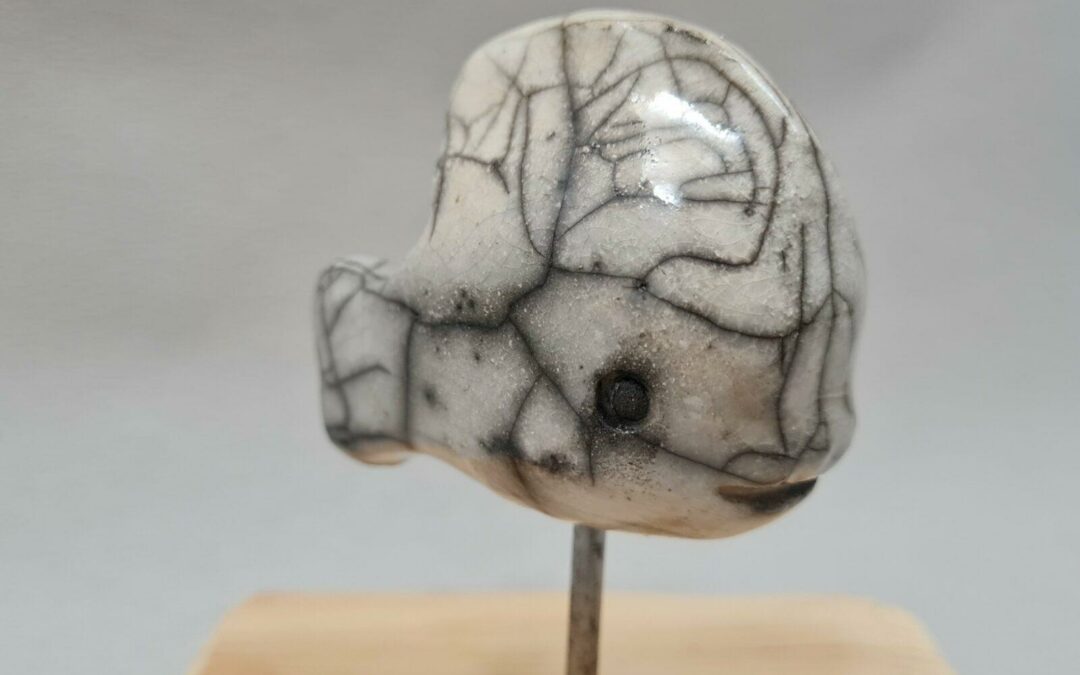 Poisson raku blanc craquelé