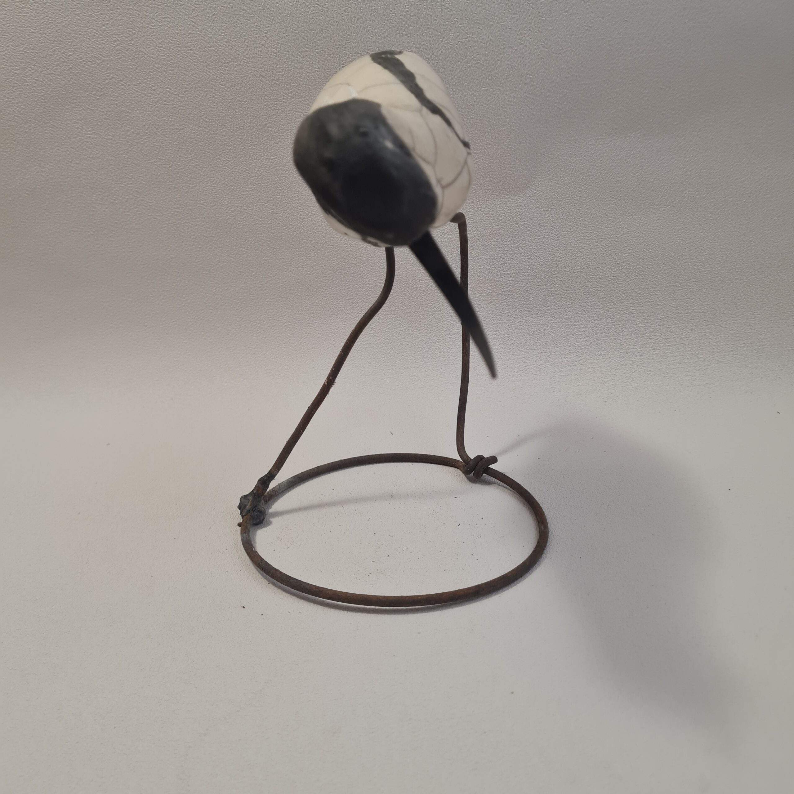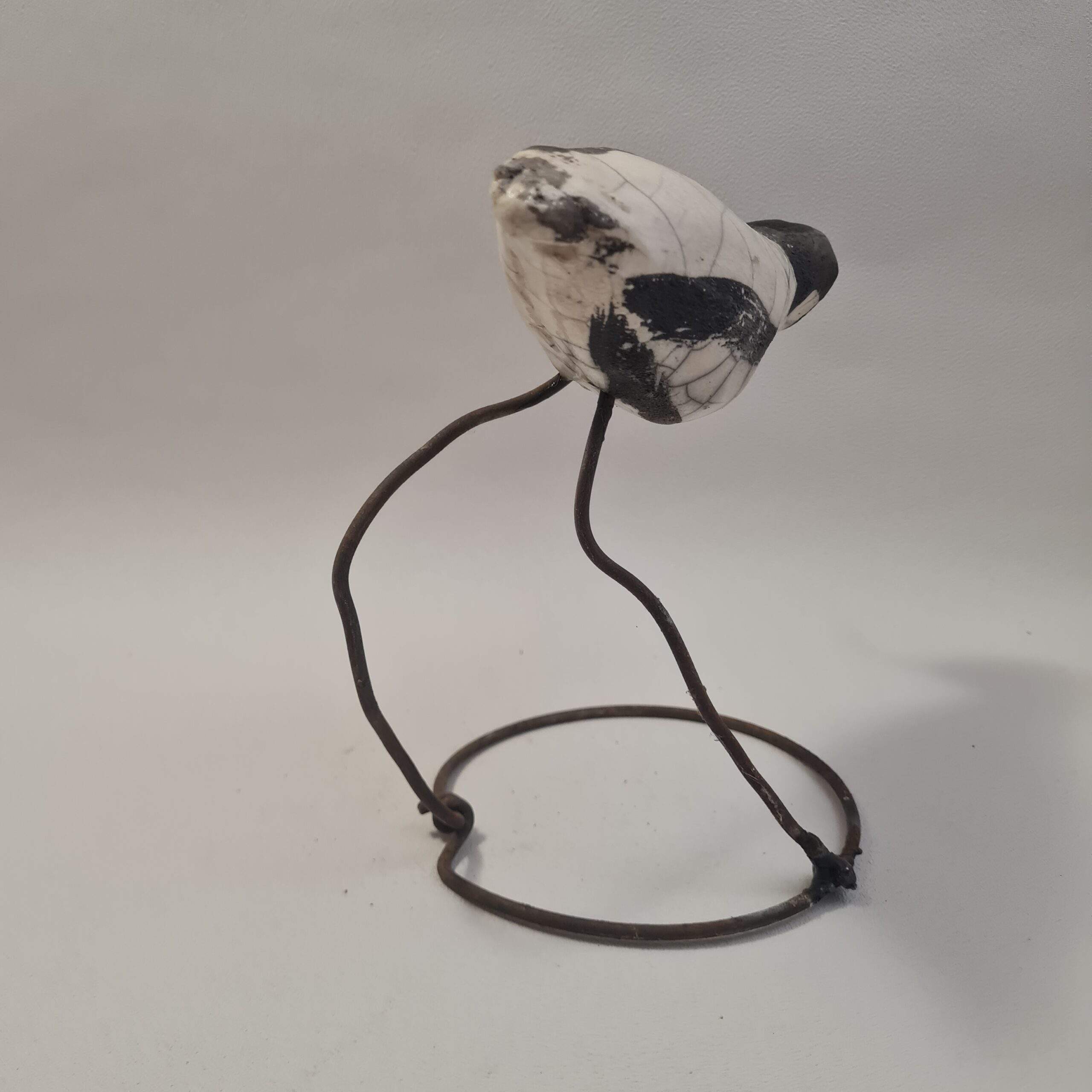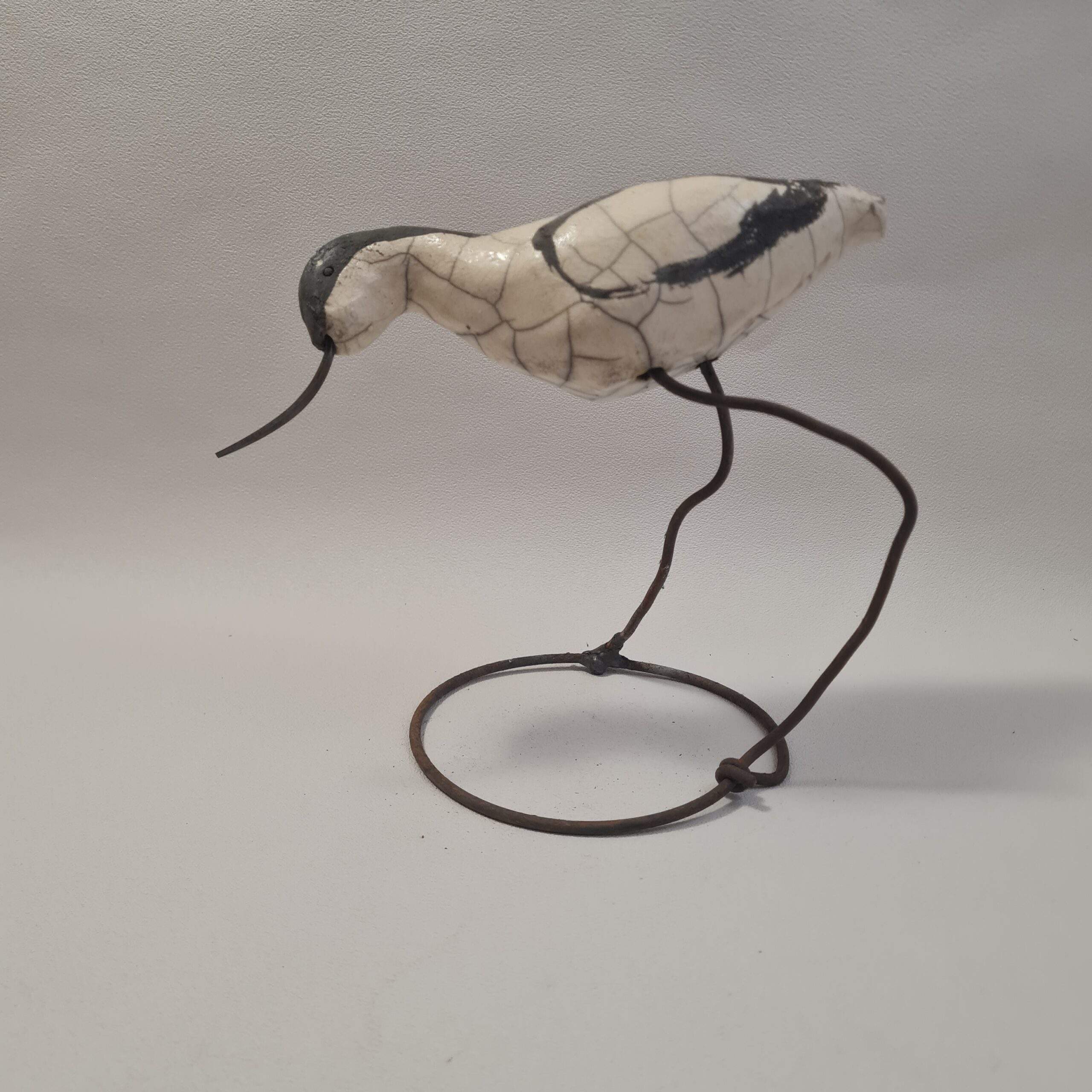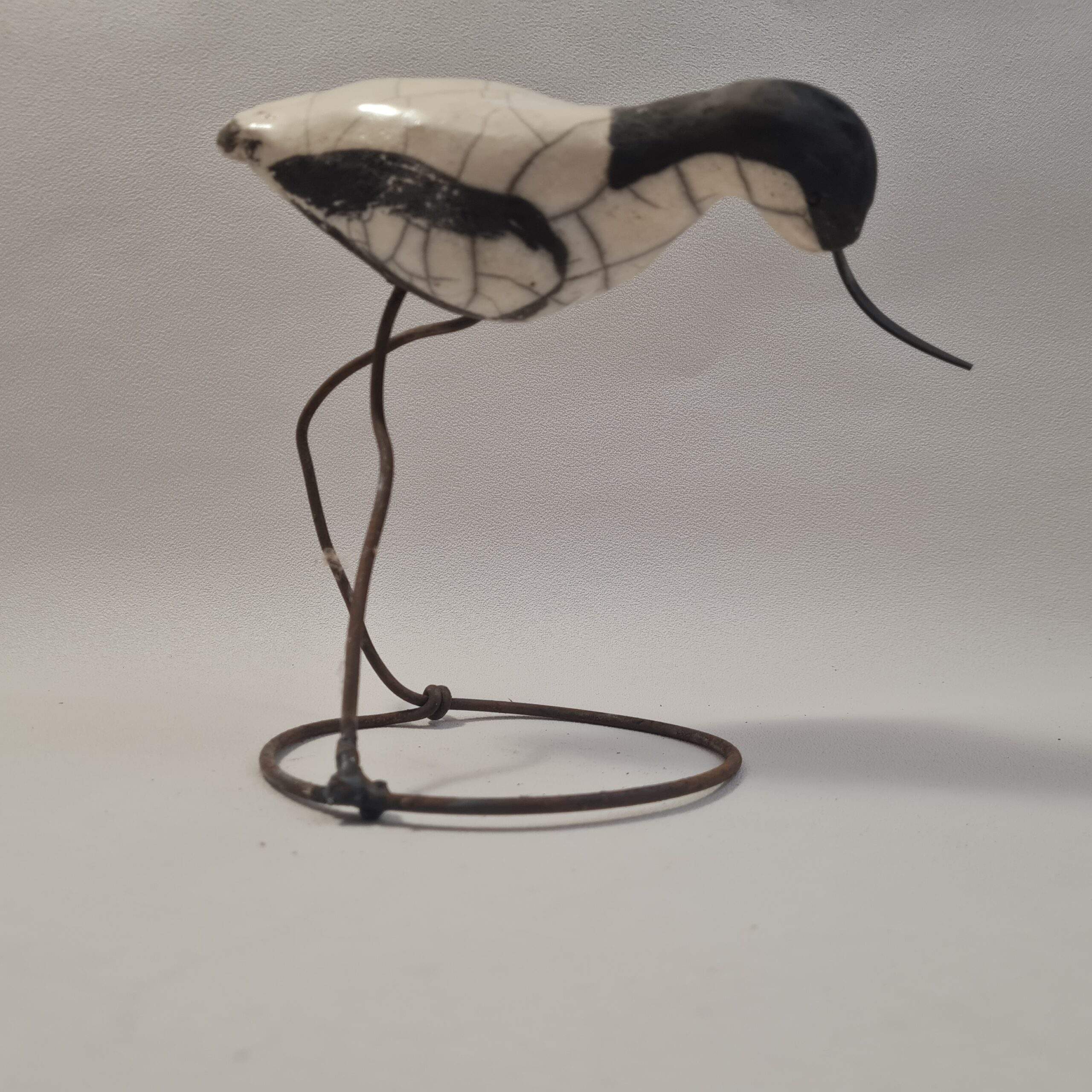 Ce petit échassier est très élégant, il fallait bien sûr retrouver celle-ci dans mes créations, j’ai donc choisi de travailler le corps des avocettes en argile avec la cuisson au Raku qui me donne des noirs et des blancs très naturels et spécifique à chaque oiseau,