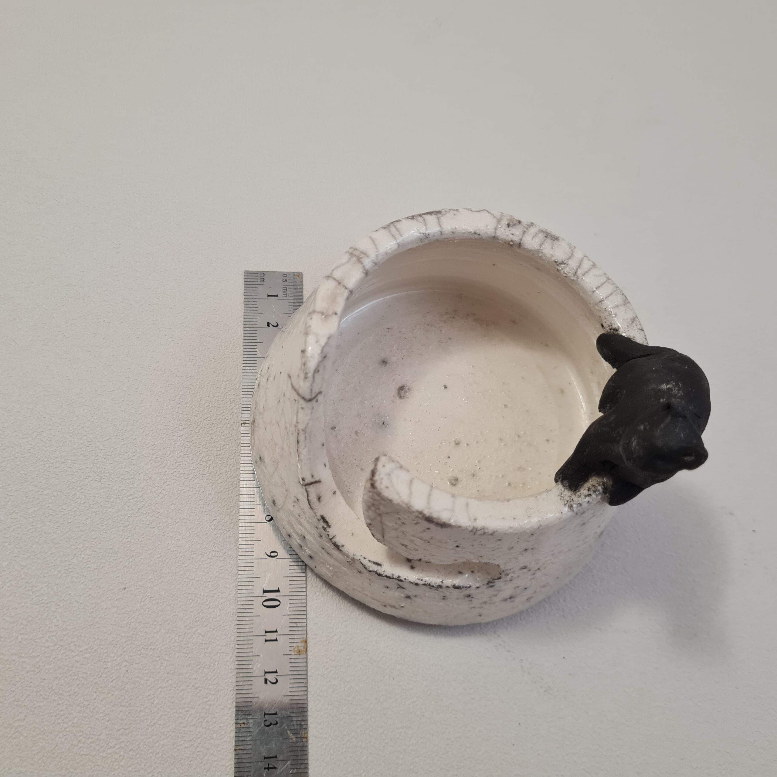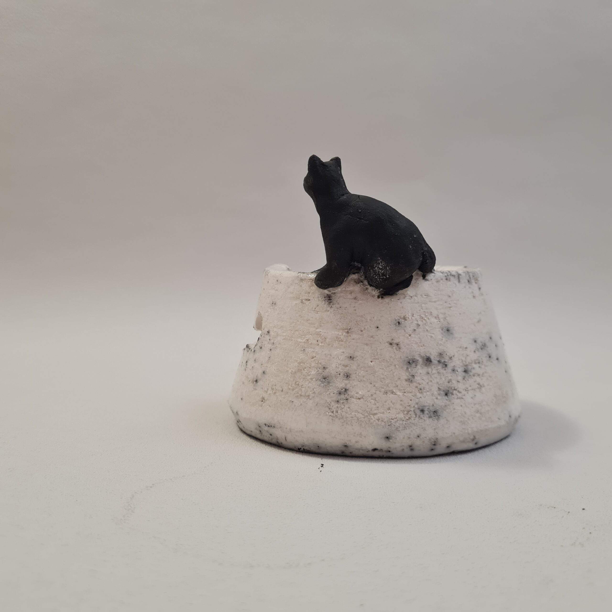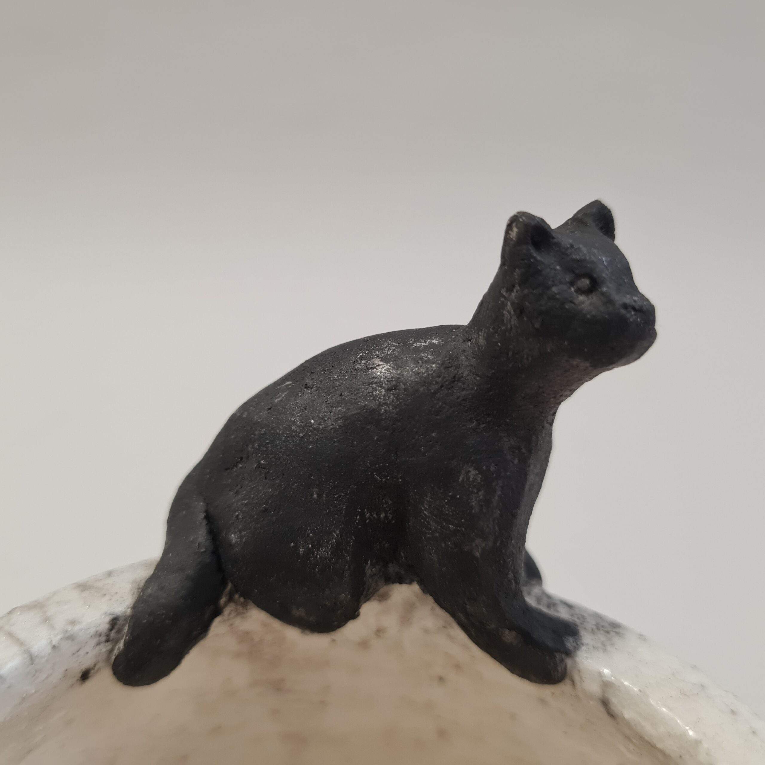 Bol conique découpé d’une virgule avec petit Chat noir assis sur le bord