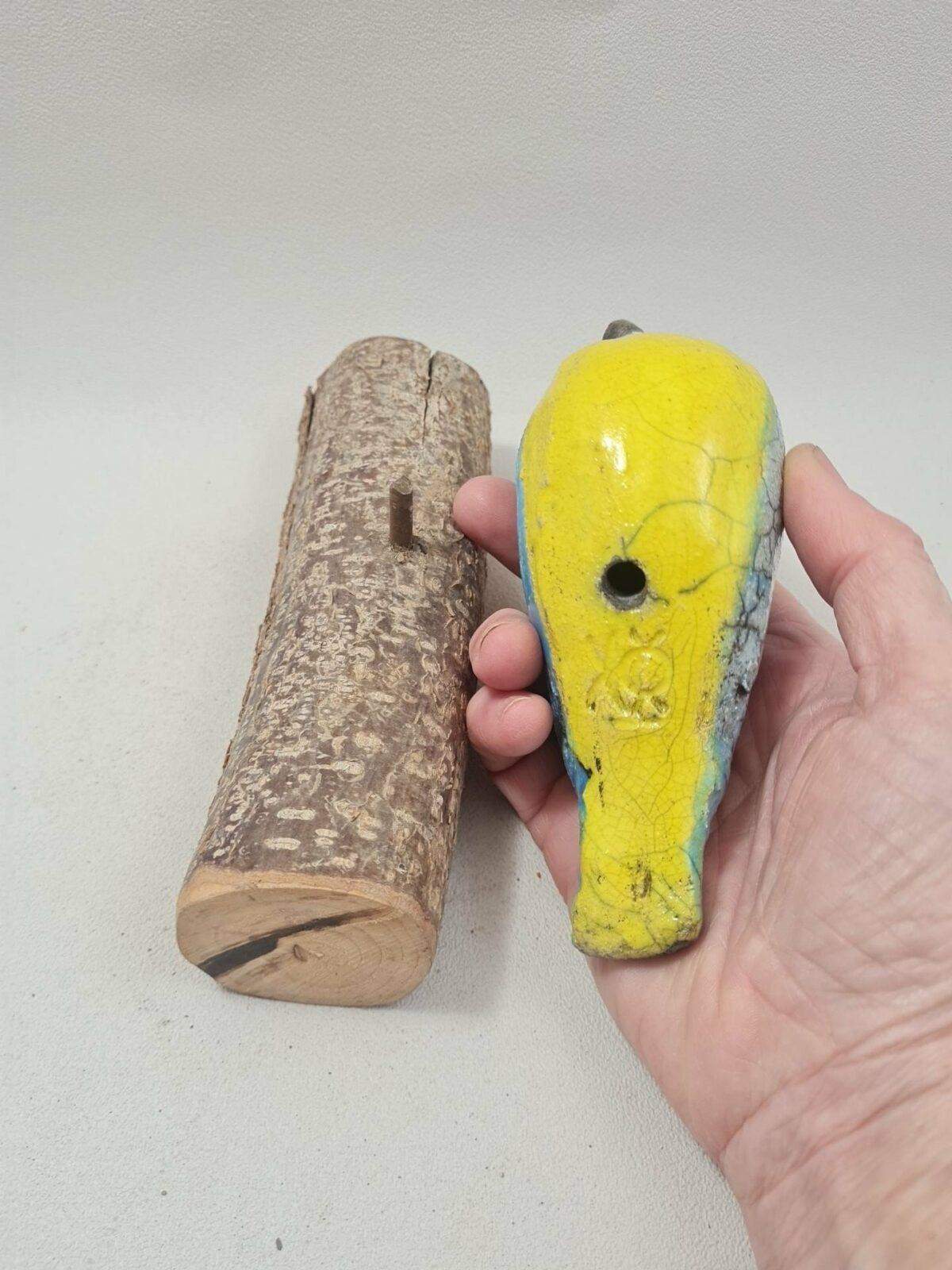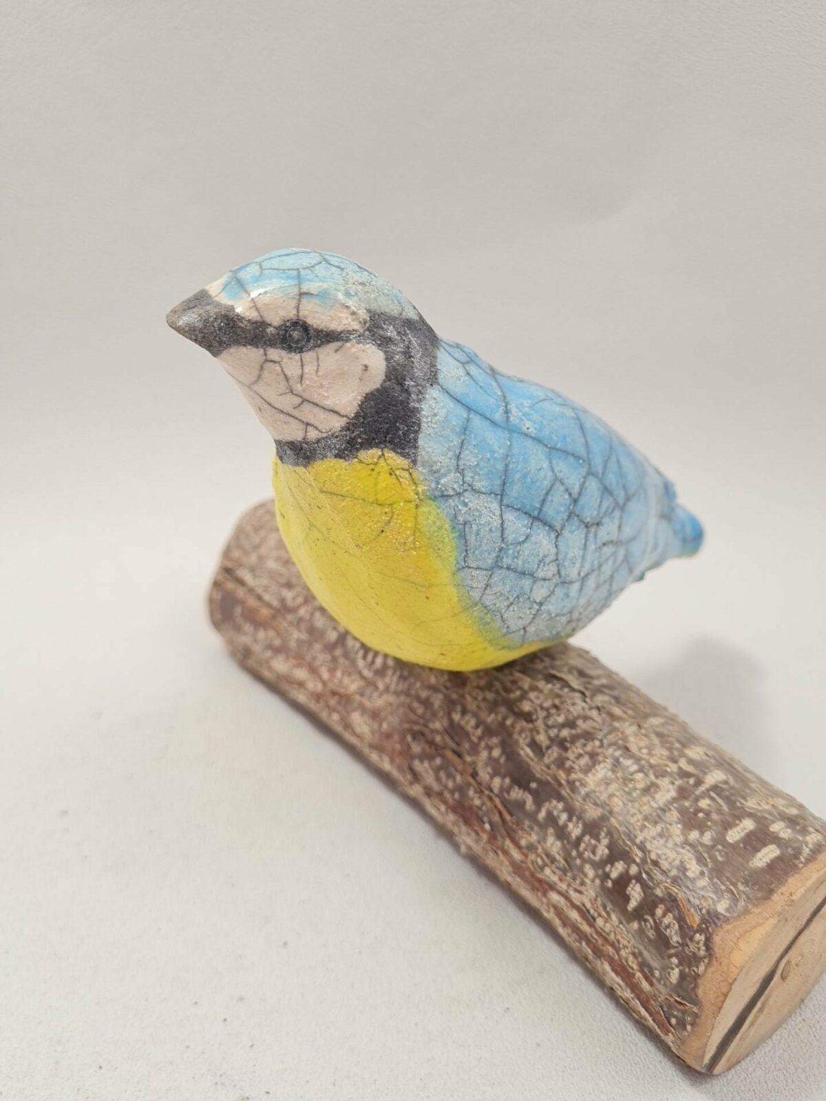 Chaque pièce est façonnée à la main et cuite selon la méthode raku. Cette technique japonaise crée des craquelures et des effets uniques. Chaque mésange est donc une pièce exclusive, avec son propre caractère.