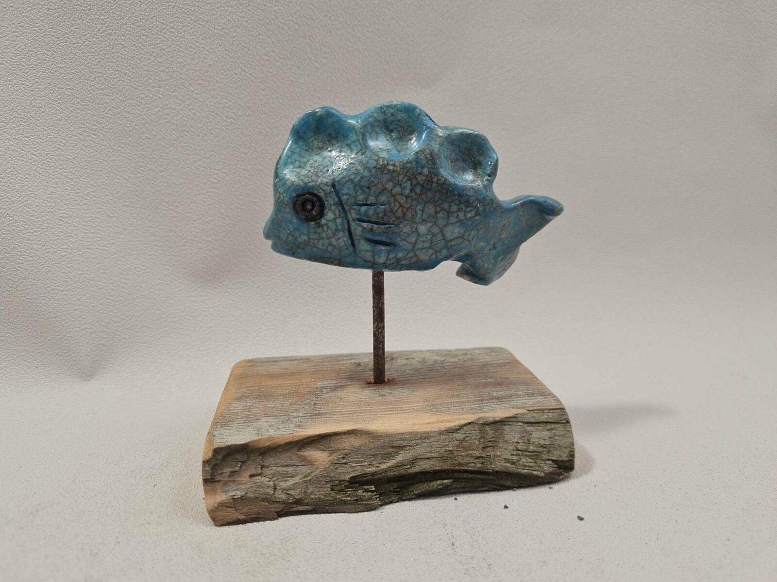 Découvrez notre poisson en céramique raku de couleur bleu turquoise, une pièce unique qui apportera éclat et sérénité à votre rebord de fenêtre ou à votre bibliothèque !