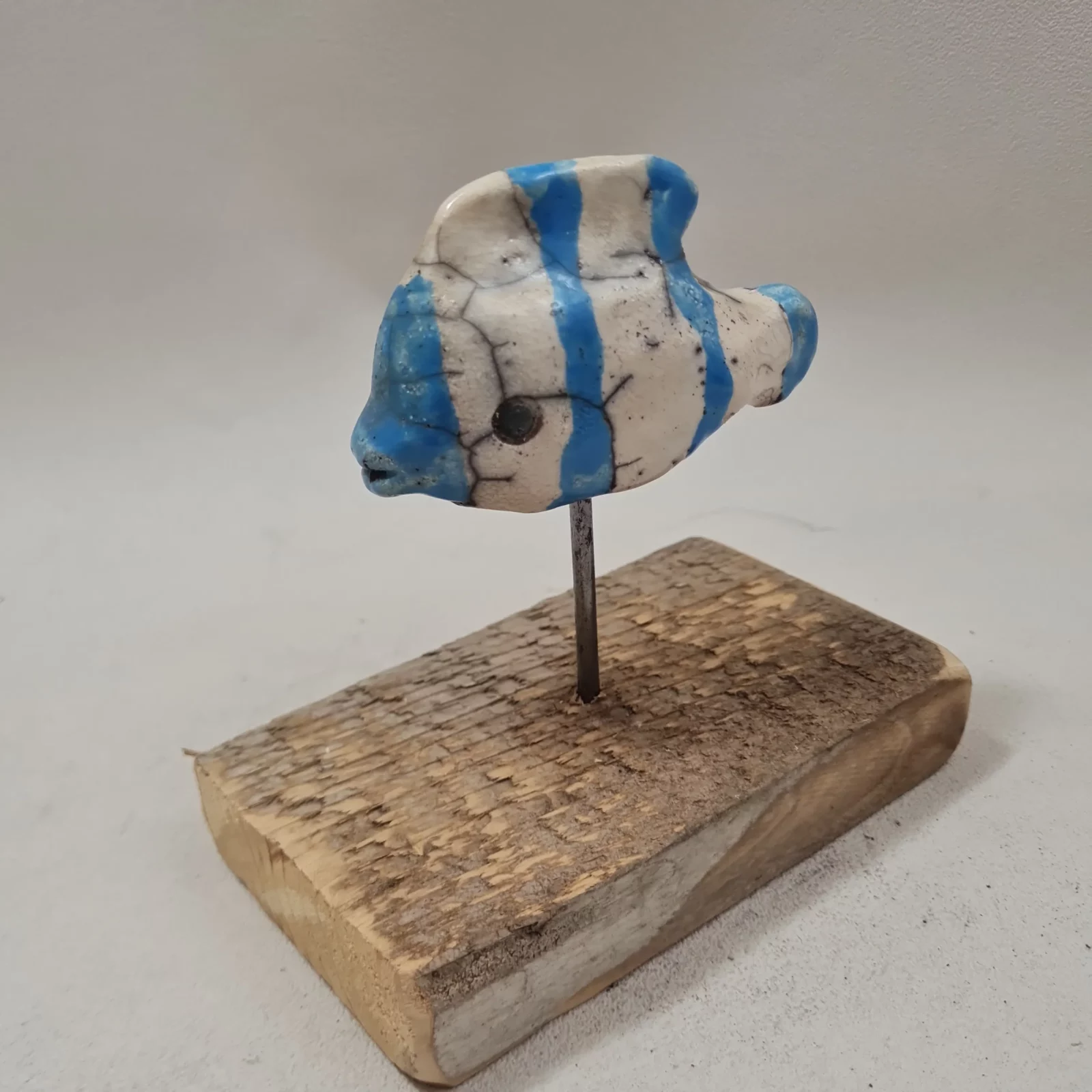 Céramique RAKU Longueur poisson : 8 cm , Hauteur totale : 12 cm environ. Poids : 90 gr