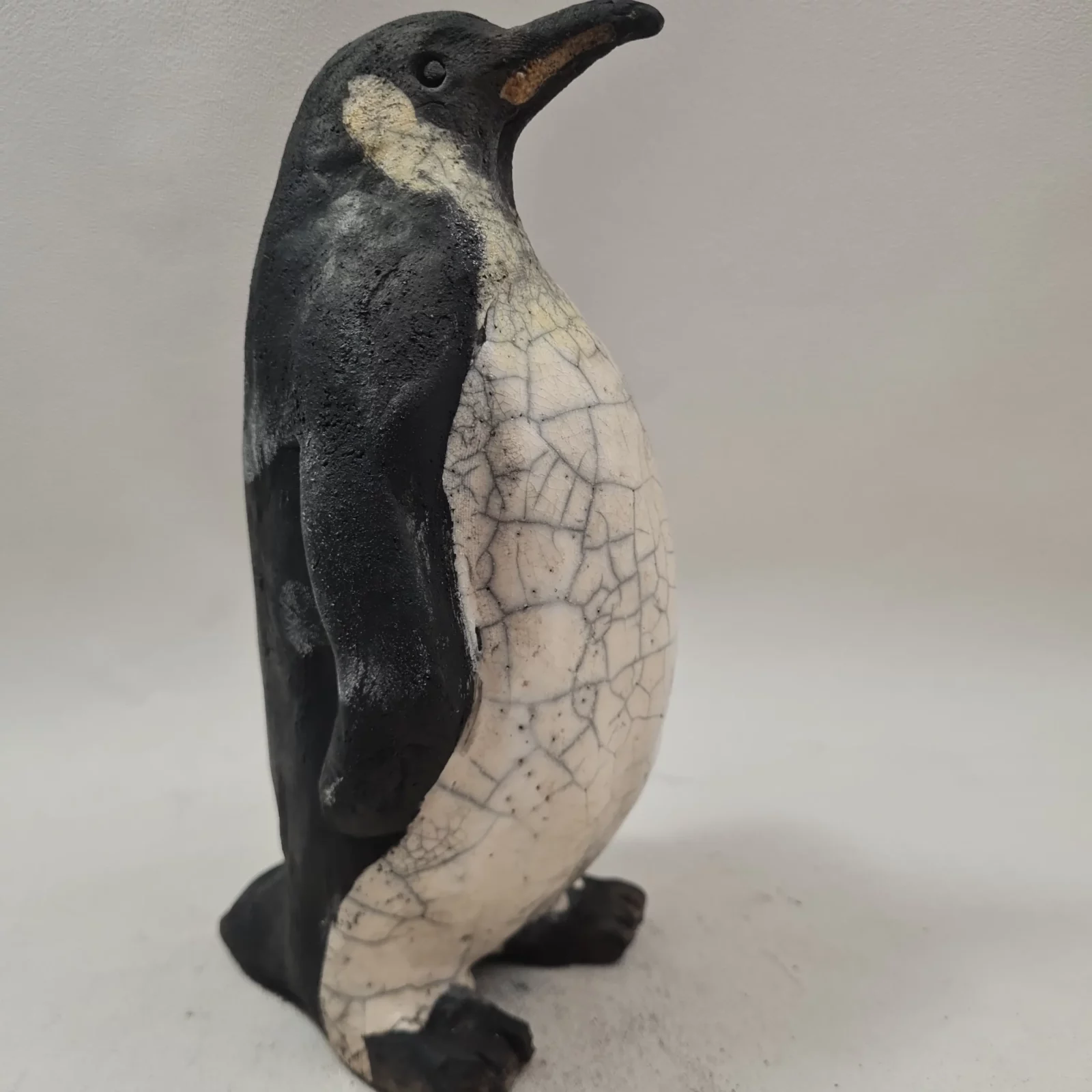 Manchot empereur sculpture en céramique raku – sculpture artisanale