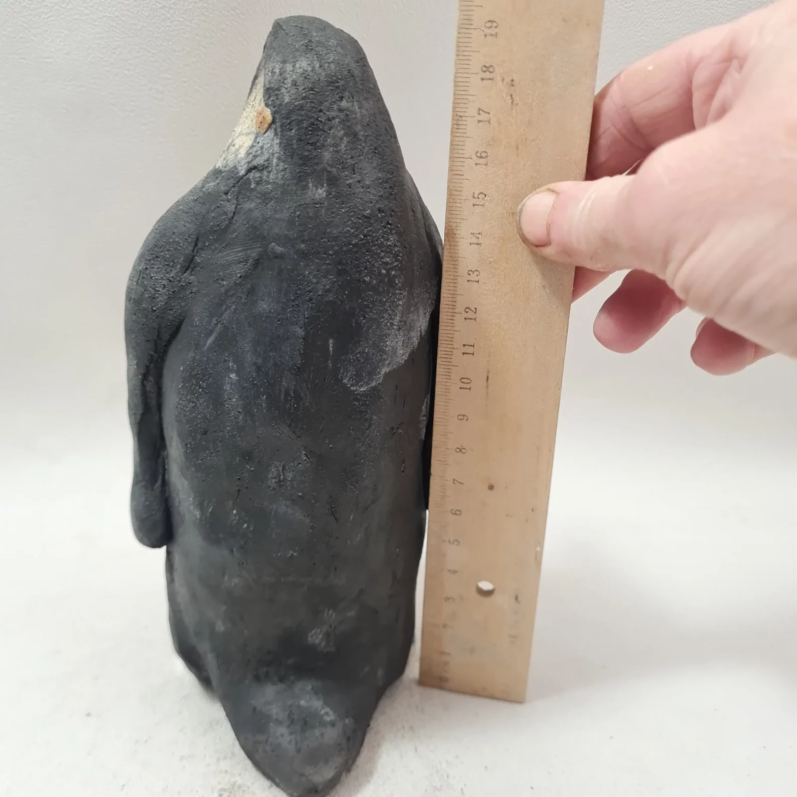 Cette sculpture représente un manchot empereur adulte dans une posture calme et stable. Son format généreux lui donne une présence naturelle, sans être imposante.