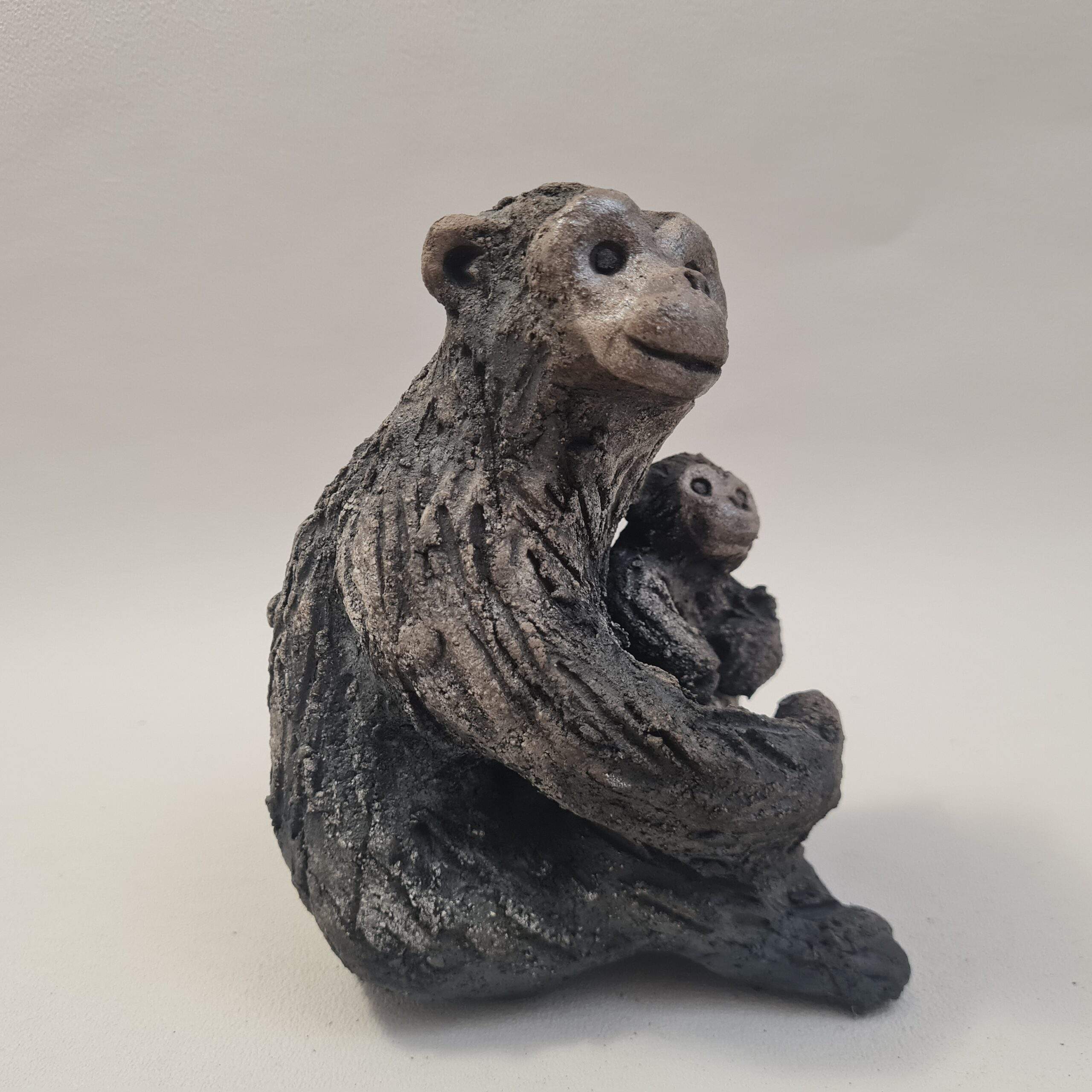 Singe Chimpanzé avec son petit en céramique